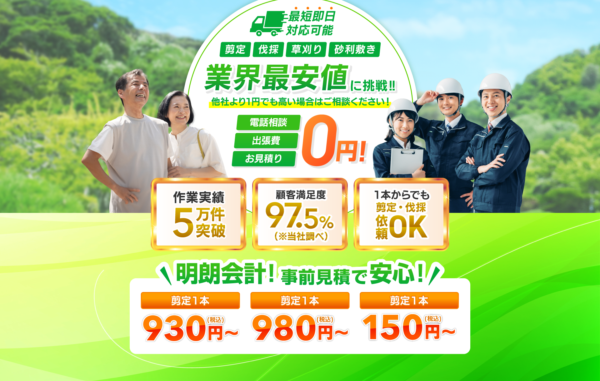 現地で状況を確認し、必要な作業だけを実施。過剰な工程や不要な費用を省くことで、安心・明朗な価格を実現しています。